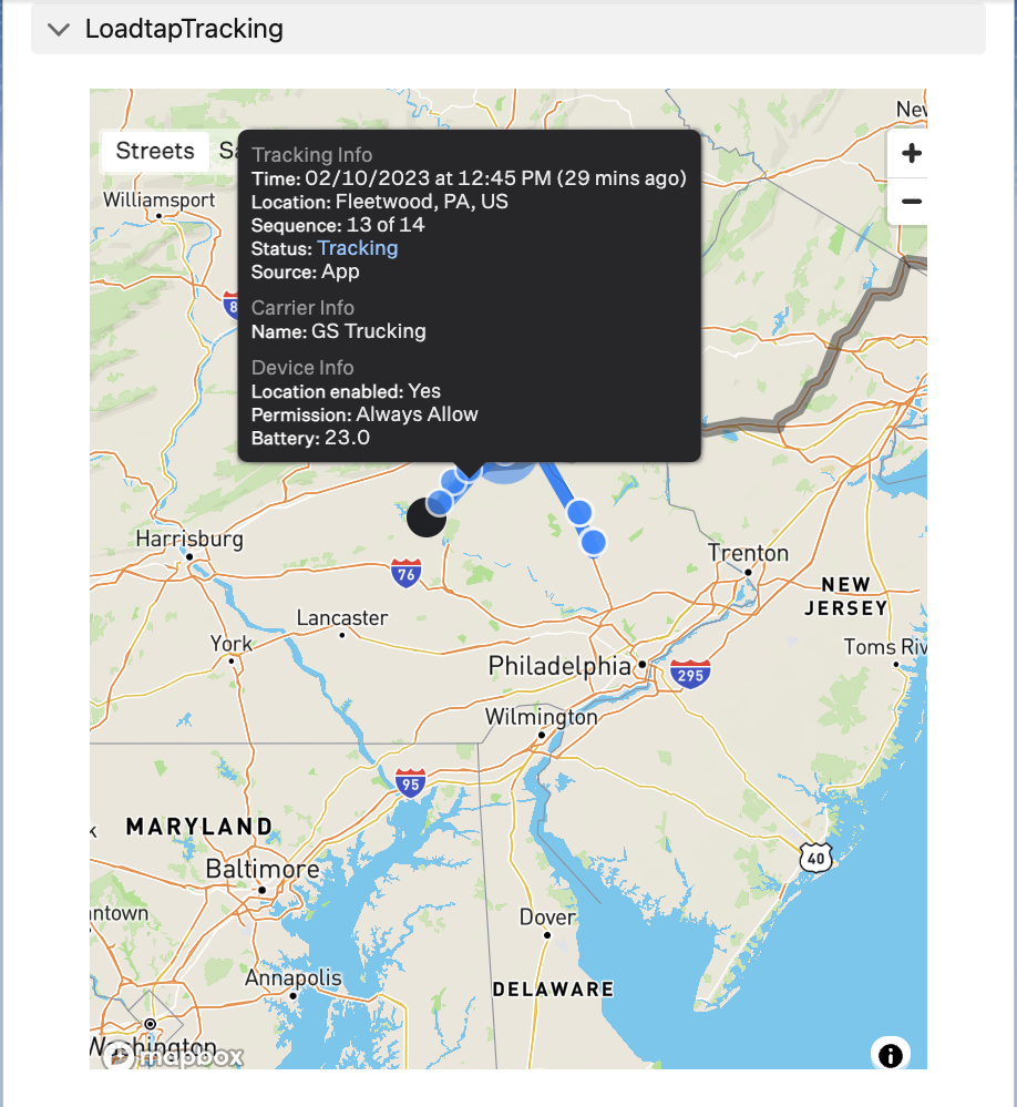 With the Chaine integration, the Chaine tracking map also is available inside of Revenova. It is places under the "Carrier Contact Info" section as such: